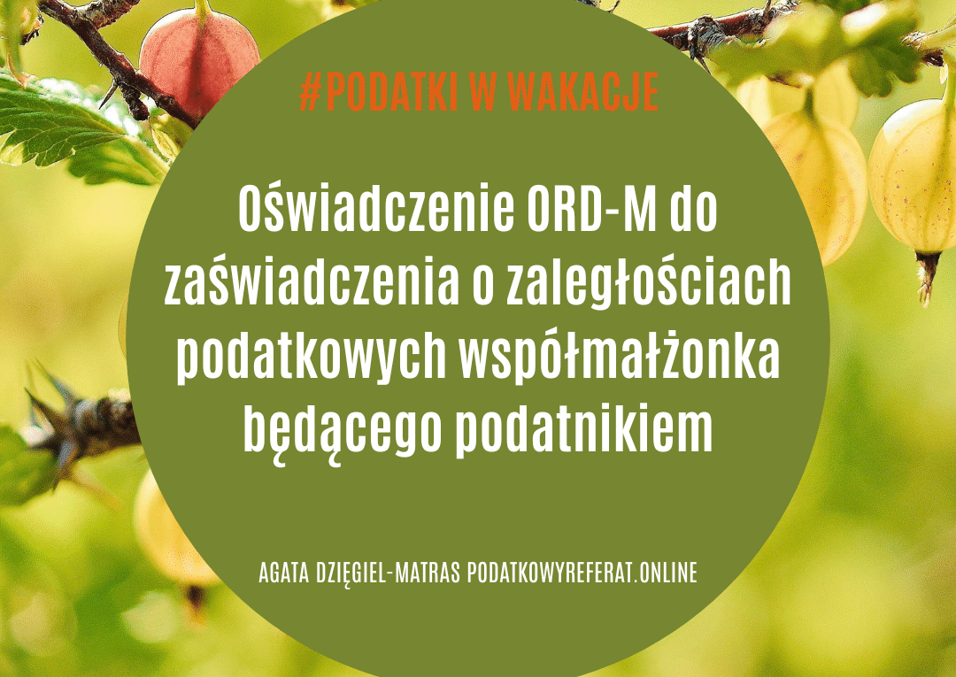 Oświadczenie ORD-M do zaświadczenia o zaległościach podatkowych współmałżonka będącego podatnikiem.
