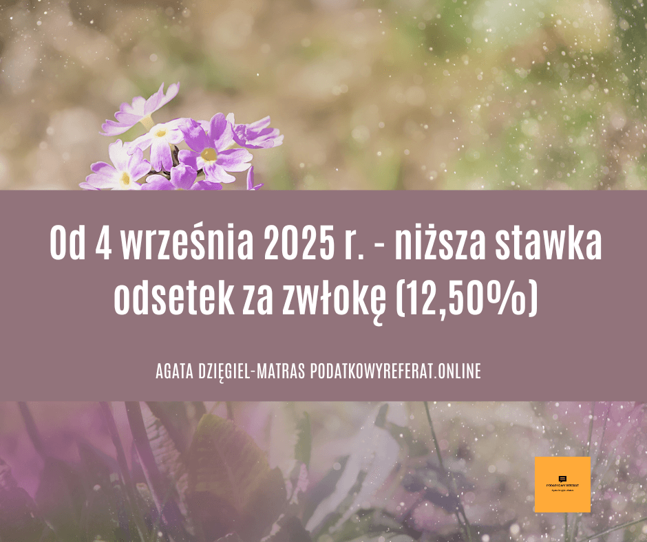 Od 4 września 2025 r. – niższa stawka odsetek za zwłokę (12,50%).