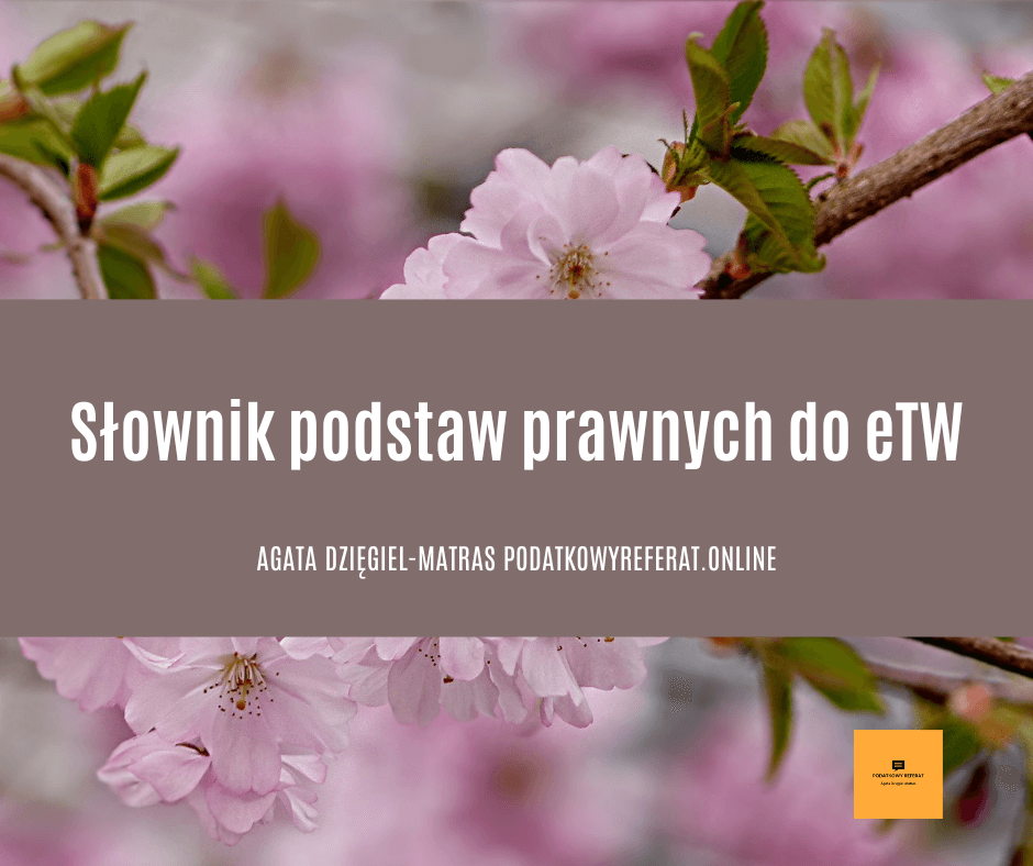 Wśród zamieszczonych dokumentów znajduje się słownik podstaw prawnych zawierający kod podstawy prawnej.