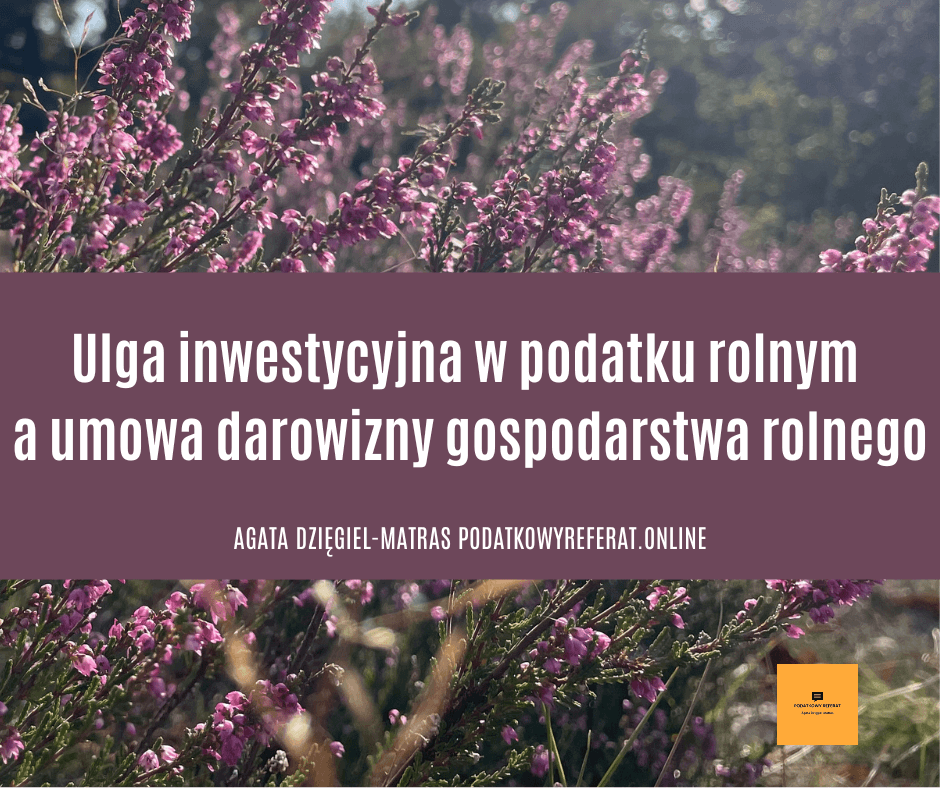 Ulga inwestycyjna w podatku rolnym a umowa darowizny gospodarstwa rolnego.