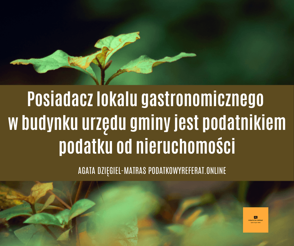 Reasumując, posiadacz lokalu gastronomicznego w budynku urzędu gminy, stosownie do art. 3 ust. 1 pkt 4 lit. a ustawy o podatkach i opłatach lokalnych jest podatnikiem podatku od nieruchomości. Lokal jest zajęty na działalność gospodarczą, a nie na potrzeby jednostki samorządu terytorialnego, w której się znajduje.
