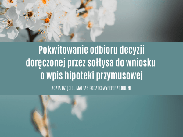 Pokwitowanie odbioru decyzji doręczonej przez sołtysa do wniosku o wpis hipoteki przymusowej.