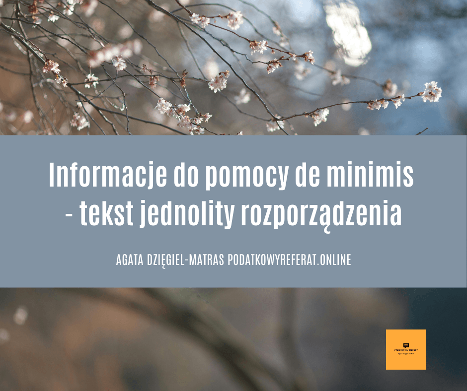 Informacje do pomocy de minimis – tekst jednolity rozporządzenia.