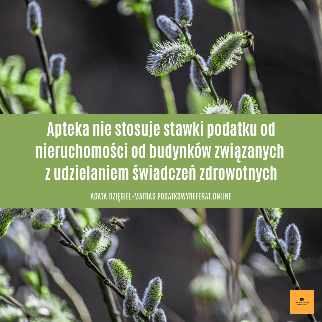 Apteka nie stosuje stawki podatku od nieruchomości od budynków związanych z udzielaniem świadczeń zdrowotnych.